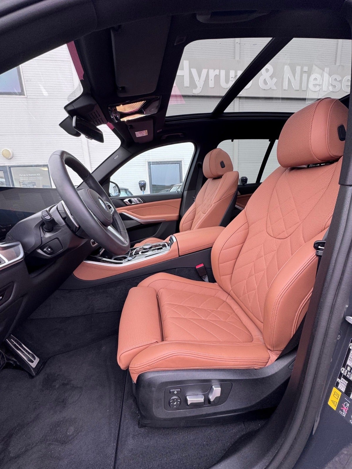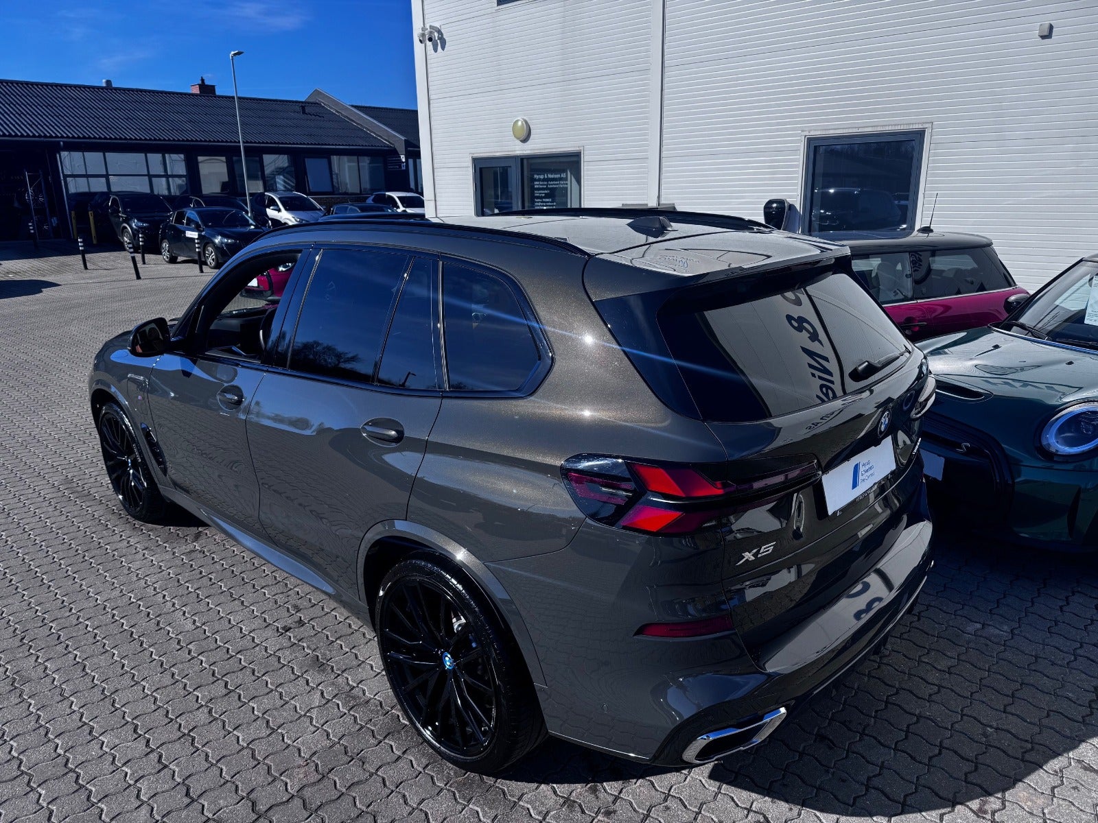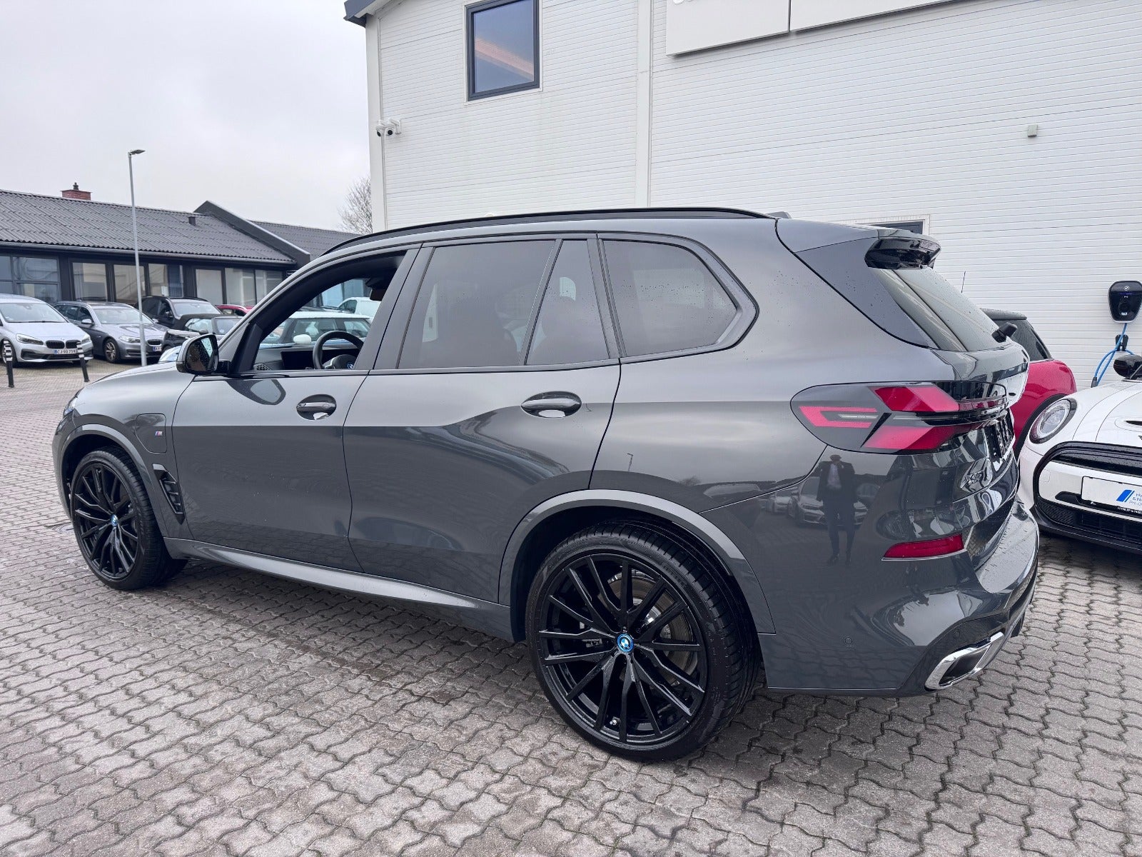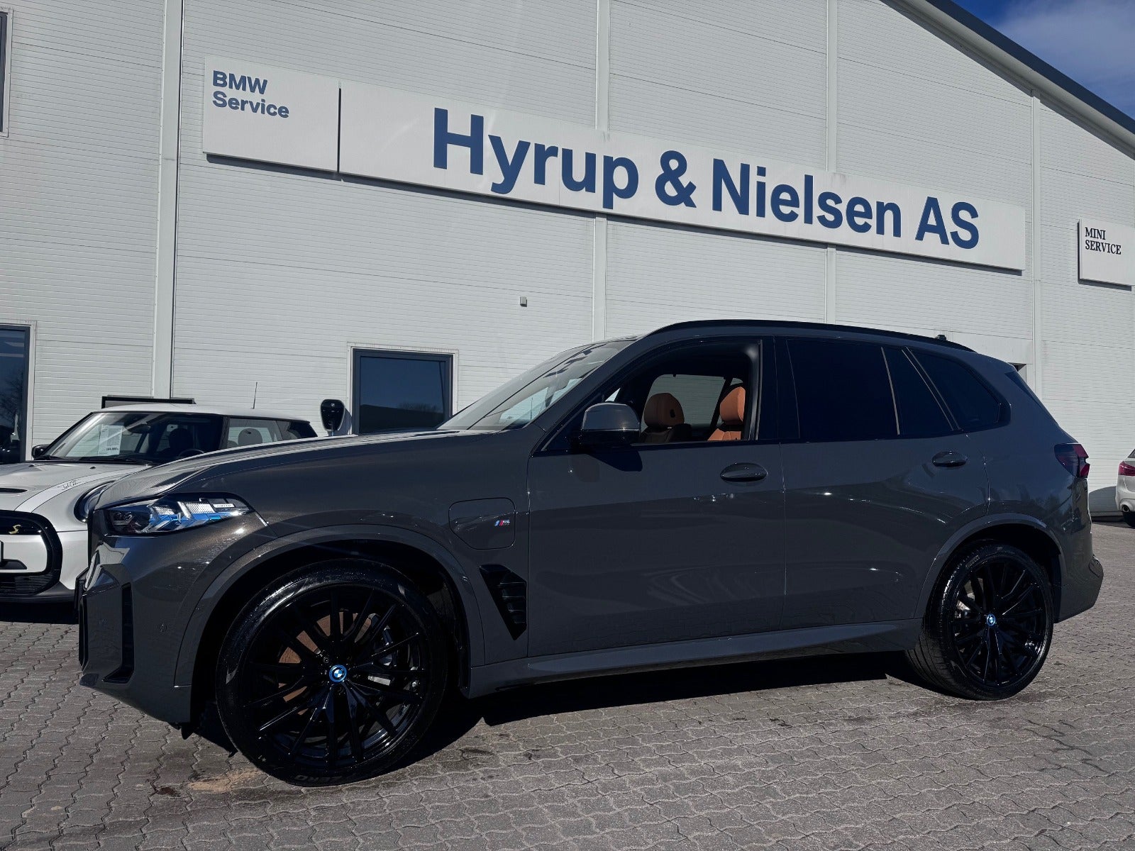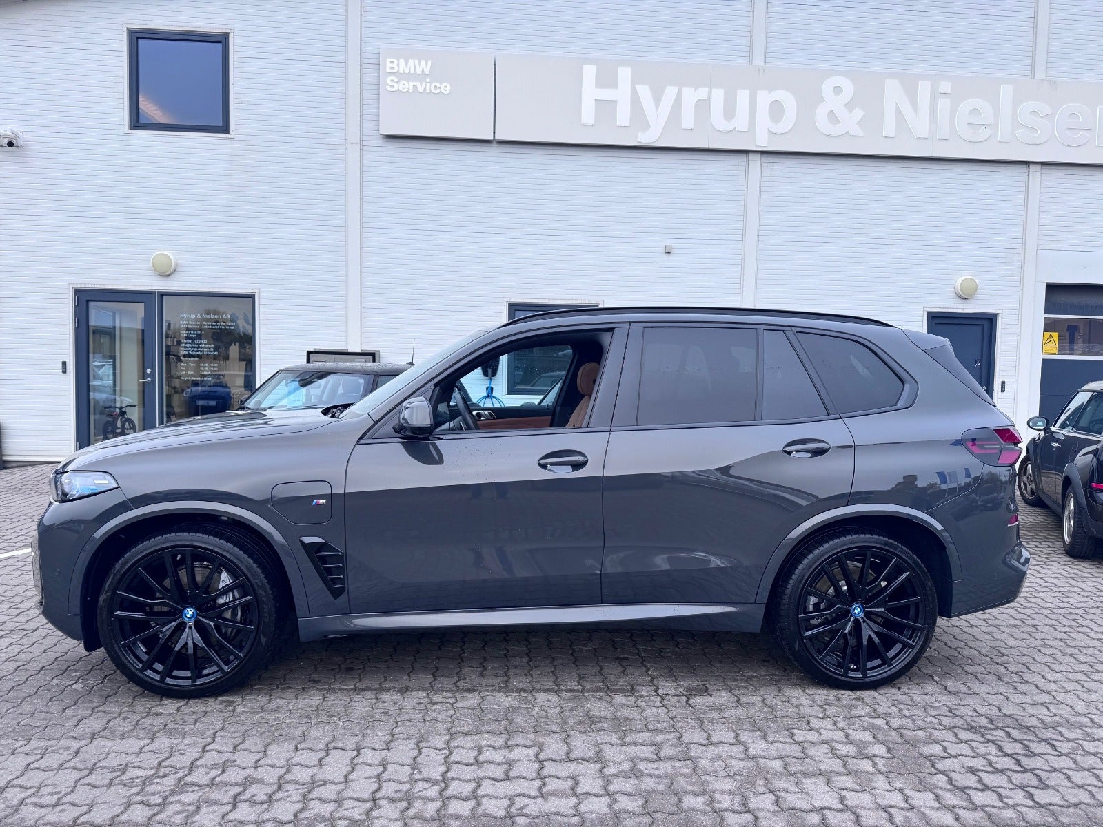 BMW X5 50e M Sport i Farven DRAVITGRÅ METALLIC med Sportssæder i COGNAC SENSAFIN og El indst. forsæder med Memory og Lændestøtte samt Sædevarme i For og bagsæder, PANORAMA GLASSOLTAG, DRIVING ASSIST, Parking Assistant Professional, Head-Up display, Adaptive LED Forlygter, Fjernlysassistent, Light Curtain, Ambiente Interiør Lyspakke, Armlæn, Kopholder med Køl og Varme, Anthracite loftbeklædning, M Sportslæderrat med multifunktion, High gloss shadow line Lister Udvendigt, BMW radiator grille iconic glow, 22" Letmetal fælge double spoke 742M, M Tagræling i Shadow Line, Ekstra Mørktonede ruder i bag, 4x Tonede El-ruder, svingbart træk (elektrisk), KOMFORT ADGANG Nøglefri adgang, fjernb. centrallås, nøglefri tænding, El betjent bagklap, Fod betjent bagklap, Soft-Close, Harman/Kardon surround sound system med musikstreaming via bluetooth, BMW Navigation Live operating area Professional med Gesture Control, DAB radio, Connected Drive håndfrit til mobil, trådløs mobilopladning, digitalt cockpit, Driving Assist, BMW Alarmsystem, kørecomputer, Regnsensor, el-klapbare sidespejle m/varme, aut. nedbl. bakspejl, udv. temp. måler, 360° kamera, PDC Parkeringssensor (For & Bag), Bakkamera, automatisk Parkeringssystem, 2 zone klima, justerbar lændestøtte, antispin, esp - Når du leaser hos os medfølger BMW Service Pakke Inclusive - RING FOR FREMVISNING