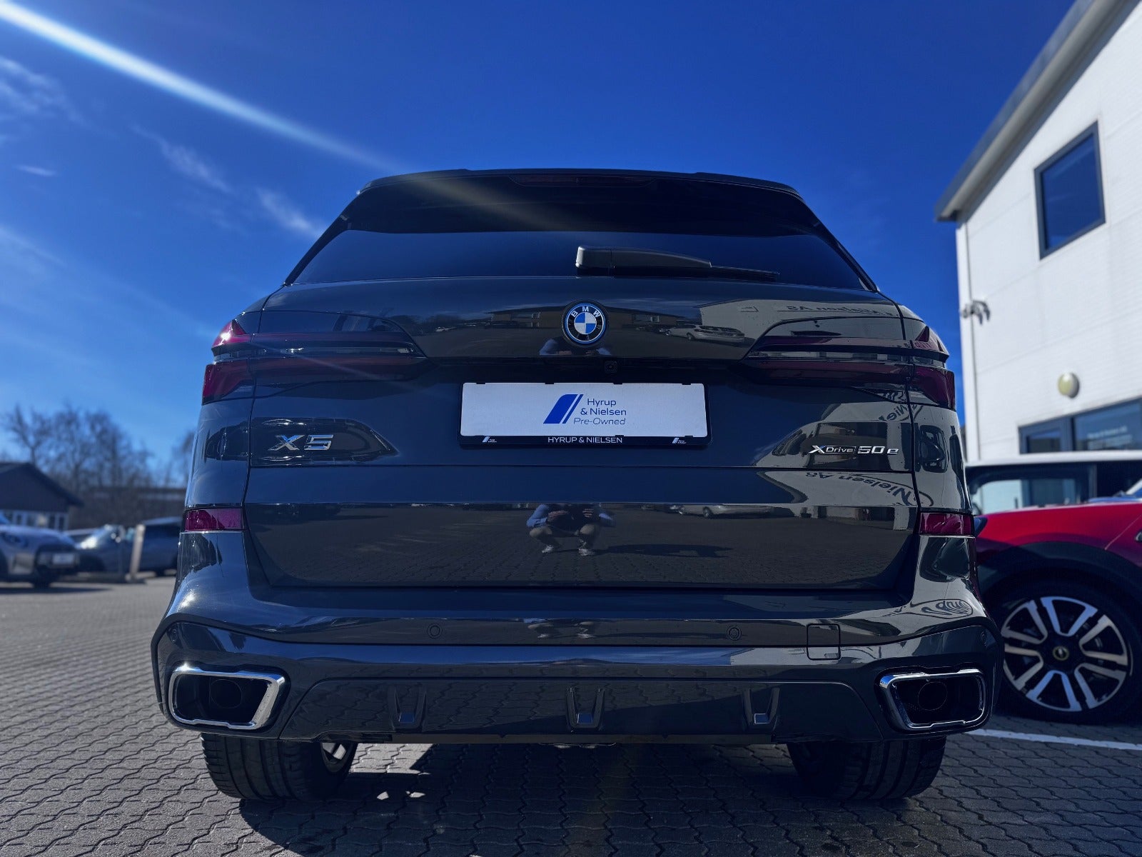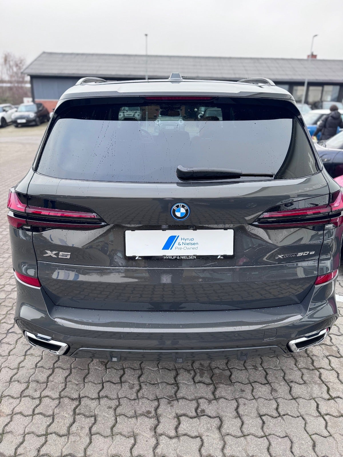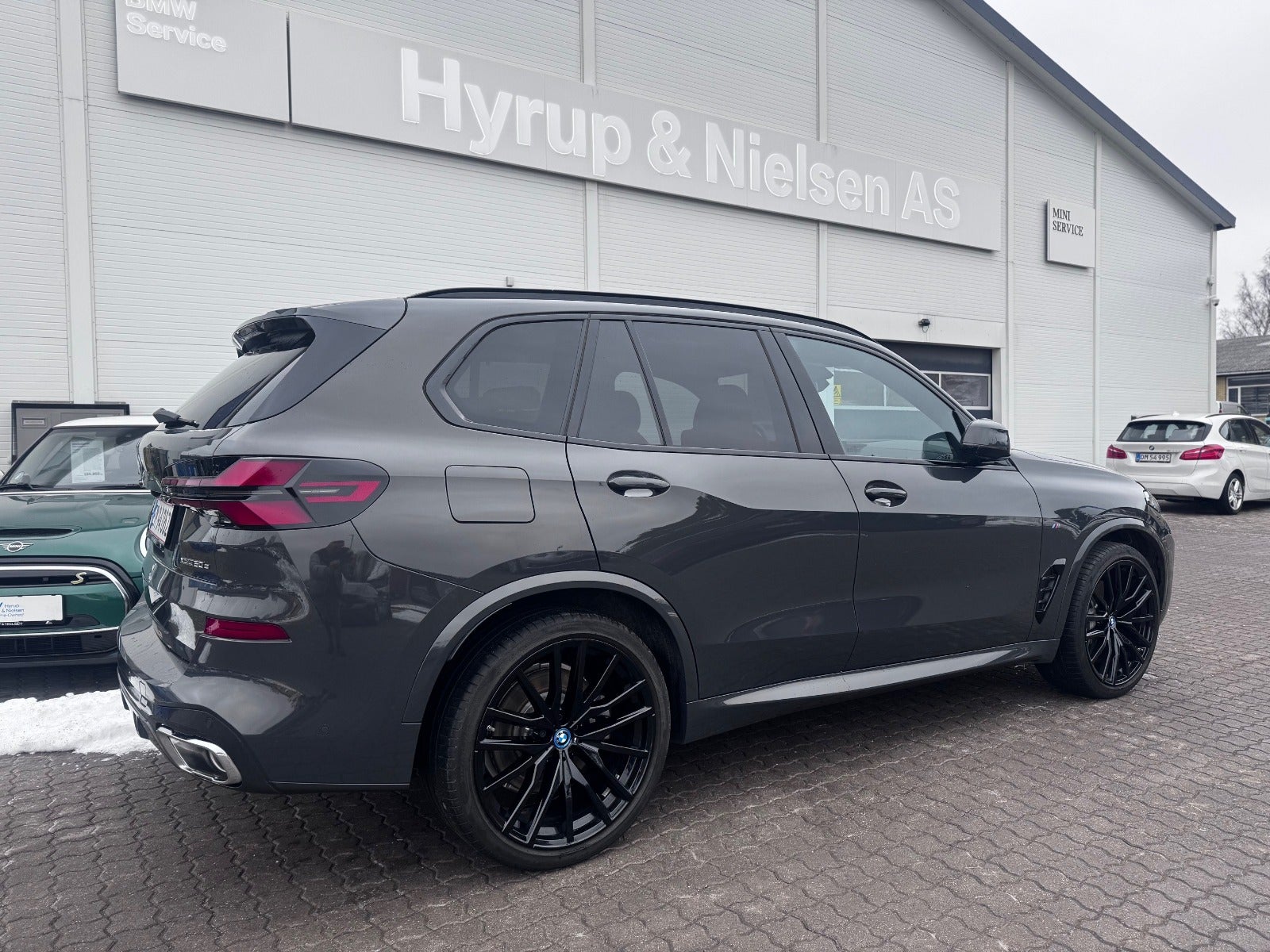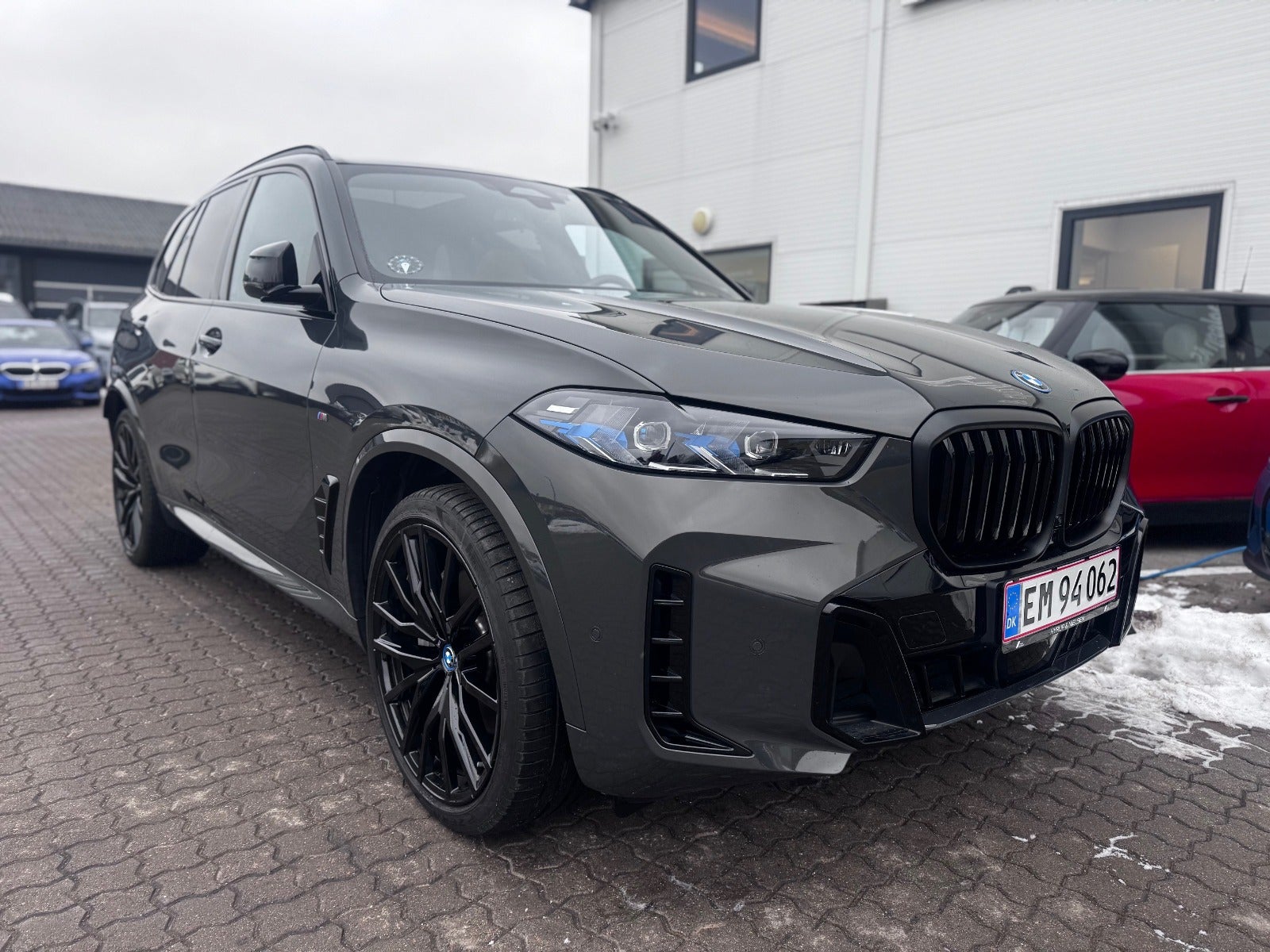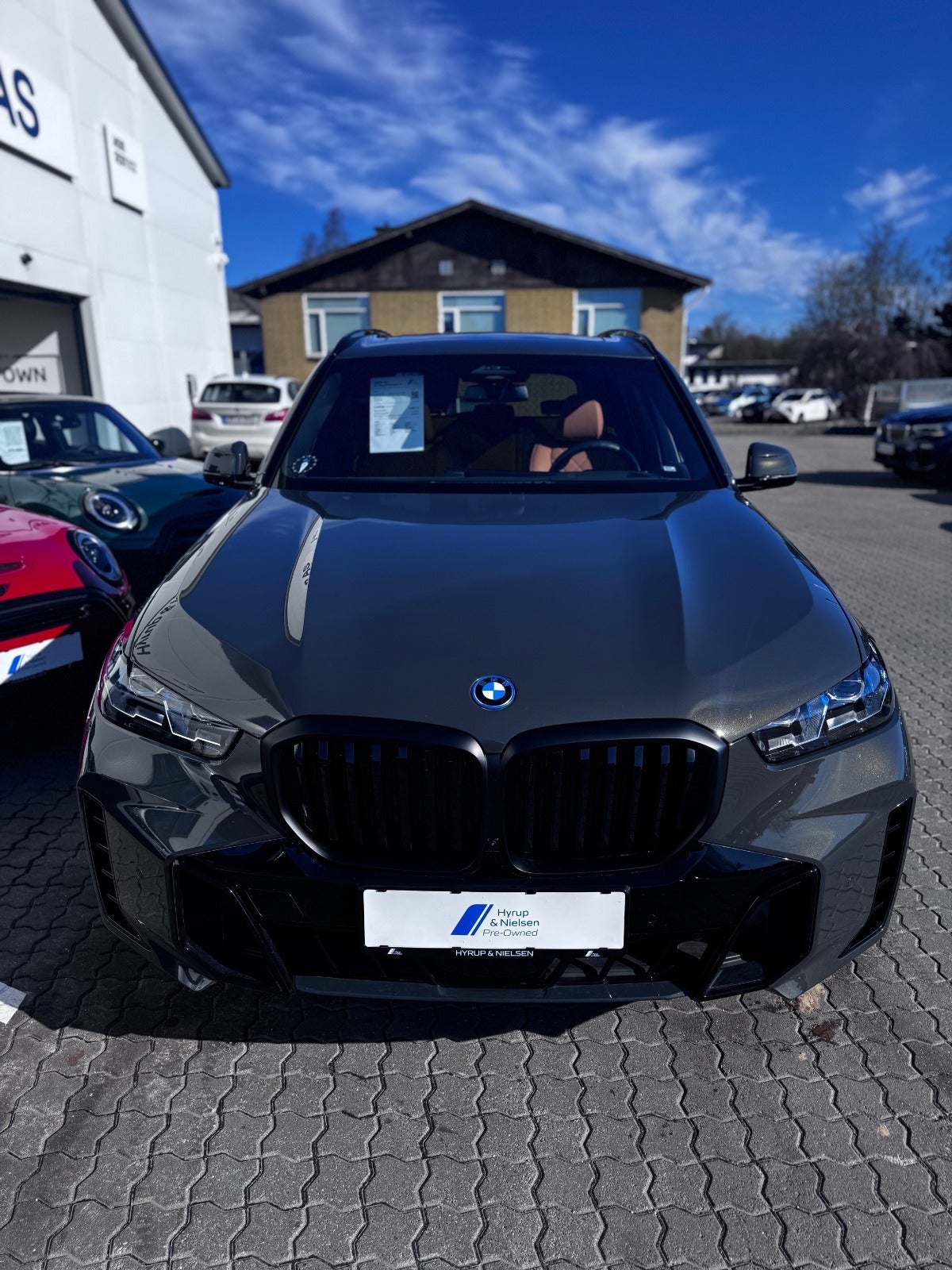 BMW X5 50e M Sport i Farven DRAVITGRÅ METALLIC med Sportssæder i COGNAC SENSAFIN og El indst. forsæder med Memory og Lændestøtte samt Sædevarme i For og bagsæder, PANORAMA GLASSOLTAG, DRIVING ASSIST, Parking Assistant Professional, Head-Up display, Adaptive LED Forlygter, Fjernlysassistent, Light Curtain, Ambiente Interiør Lyspakke, Armlæn, Kopholder med Køl og Varme, Anthracite loftbeklædning, M Sportslæderrat med multifunktion, High gloss shadow line Lister Udvendigt, BMW radiator grille iconic glow, 22" Letmetal fælge double spoke 742M, M Tagræling i Shadow Line, Ekstra Mørktonede ruder i bag, 4x Tonede El-ruder, svingbart træk (elektrisk), KOMFORT ADGANG Nøglefri adgang, fjernb. centrallås, nøglefri tænding, El betjent bagklap, Fod betjent bagklap, Soft-Close, Harman/Kardon surround sound system med musikstreaming via bluetooth, BMW Navigation Live operating area Professional med Gesture Control, DAB radio, Connected Drive håndfrit til mobil, trådløs mobilopladning, digitalt cockpit, Driving Assist, BMW Alarmsystem, kørecomputer, Regnsensor, el-klapbare sidespejle m/varme, aut. nedbl. bakspejl, udv. temp. måler, 360° kamera, PDC Parkeringssensor (For & Bag), Bakkamera, automatisk Parkeringssystem, 2 zone klima, justerbar lændestøtte, antispin, esp - Når du leaser hos os medfølger BMW Service Pakke Inclusive - RING FOR FREMVISNING