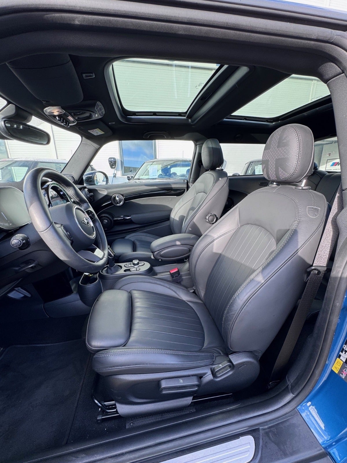 Danmark Største Udvalg af Brugte MINIs - MINI COOPER SE MAXIMISE i Farven ISLAND BLUE METALLIC med Piano Black Exteriør og Sportssæder i Læder Lounge Carbon Black, Varmepumpe, PANORAMA GLASSOLTAG, MINI Head-Up Display, HiFi højtalersys.Harman Kardon med musikstreaming via bluetooth, MINI Navigationsystem med Multifunctional instrument display, Apple carplay, Radio MINI Visual Boost med DAB radio, MINI Connected håndfrit til mobil, trådløs mobilopladning, digitalt cockpit, kørecomputer, Driving Assistant, Park Assist, MINI Driving Modes, Fartpilot med Bremsefunktion, NAPPA Sportslæderrat med multifunktion samt RATVARME, 2 zone klima, Anthracite loftbeklædning, 17" Letmetal fælge Scissor Spoke 830, Tonede El-ruder, Ekstra Mørktonede ruder i bag, el-klapbare sidespejle m/varme, aut. nedbl. bakspejl, udv. temp. måler, Regnsensor, KOMFORT ADGANG nøglefri adgang, fjernb. centrallås, nøglefri tænding, LED Forlygter, MINI Lyspakke Udvenigt, Hvide Blinklys, Ambiente Interiør Lyspakke med Event Display, PDC Parkeringssensor (for & Bag), Bakkamera, PARK ASSIST automatisk parkeringssystem, højdejust. forsæder, Sædevarme, isofix, splitbagsæde, Armlæn, Kopholder, antispin, esp, vognbaneassistent, automatisk nødbremsesystem - Mulighed For Finansiering via BMW Finans - RING FOR FREMVISNING