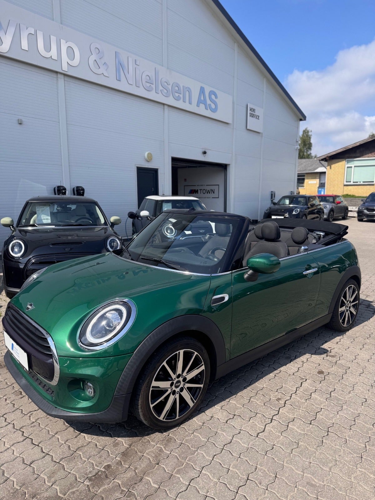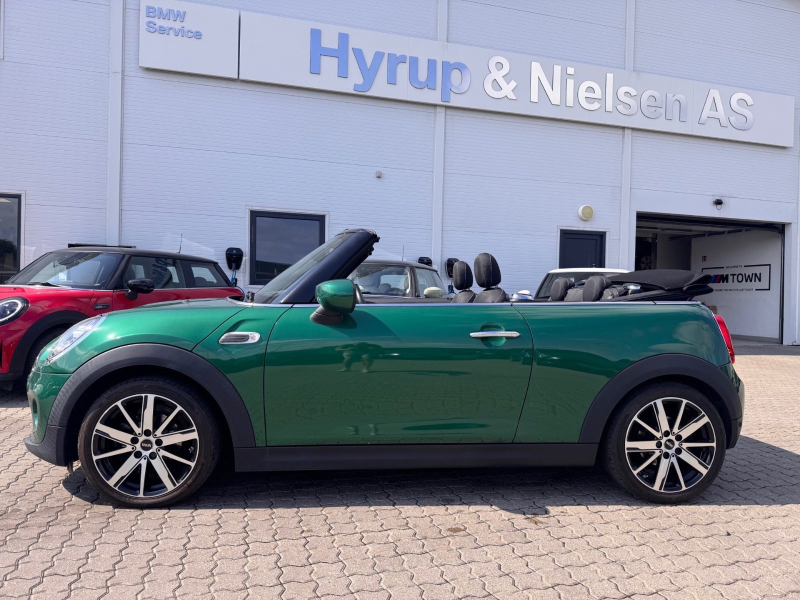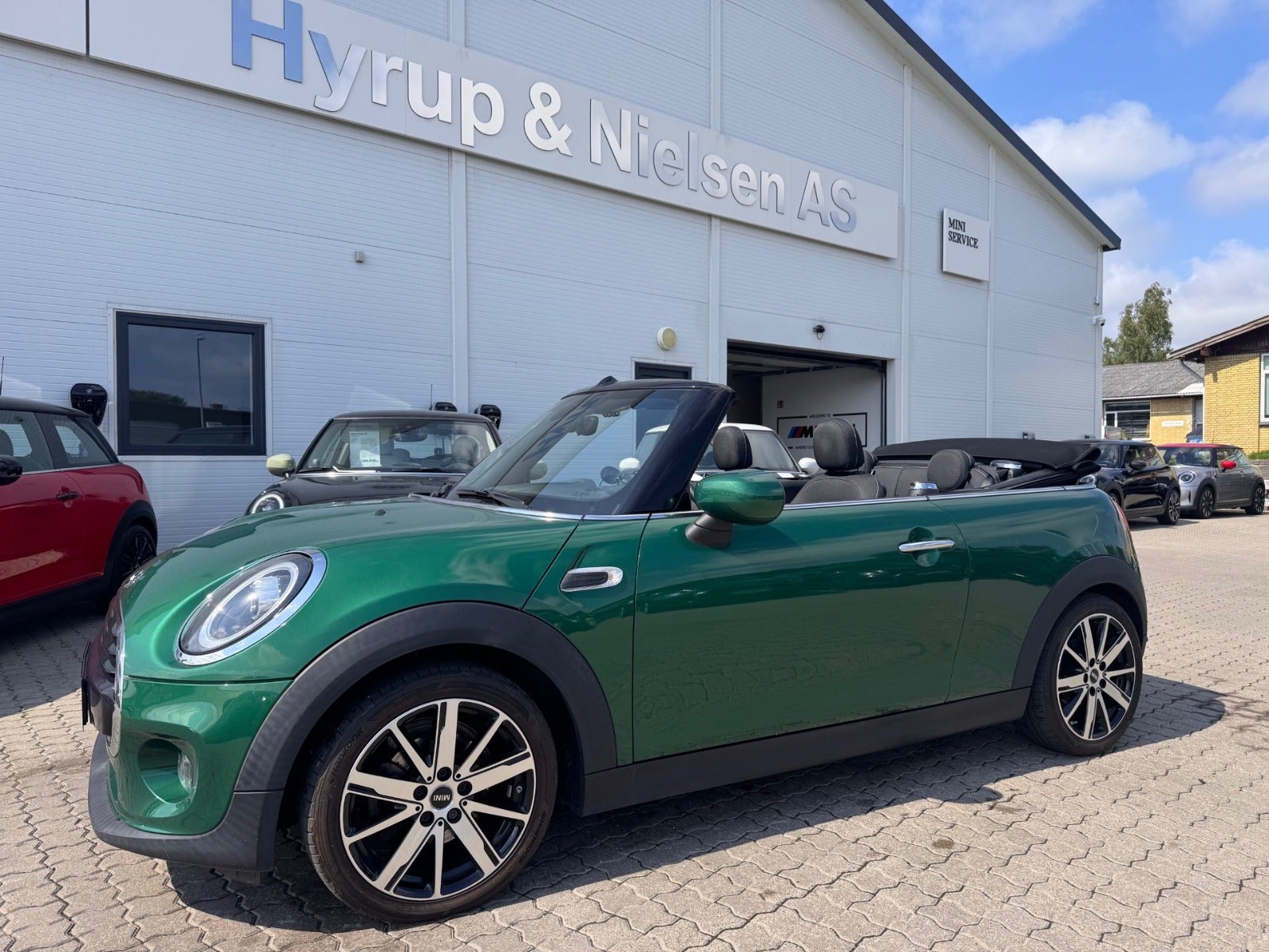 MINI COOPER ESSIENTAL CABRIOLET i Farven BRITISH RACING GREEN med Sæder i Stof Firework Carbon Black/Carbon Black, PEPPER PAKKE, MINI Excitement Pakke, 16"Letmetalfælge Loop Spoke silver ( 17" Som vist på billedet kan tilkøbes ), LED Forlygter, LED Tågelygter, MINI Lyspakke Udvendigt, Ambiente Interiør Lyspakke, Hvide Blinklys, Sportslæderrat med multifunktion, 2 zone klima, Fartpilot med Bremsefunktion, PDC Parkeringssensor (bag), Regnsensor, el-sidespejle m/varme, højdejust. forsæder, Splitbagsæde, Sædevarme, Kopholder, Armlæn, 4 x Tonede El-ruder, fjernb. centrallås, nøglefri tænding, udv. temp. måler, kørecomputer, Radio MINI Visual Boost med musikstreaming via bluetooth, DAB+ radio, MINI Connected håndfrit til mobil, antispin, esp, automatisk nødbremsesystem - Når du leaser hos os medfølger service pakke fra MINI - RING FOR FREMVISNING