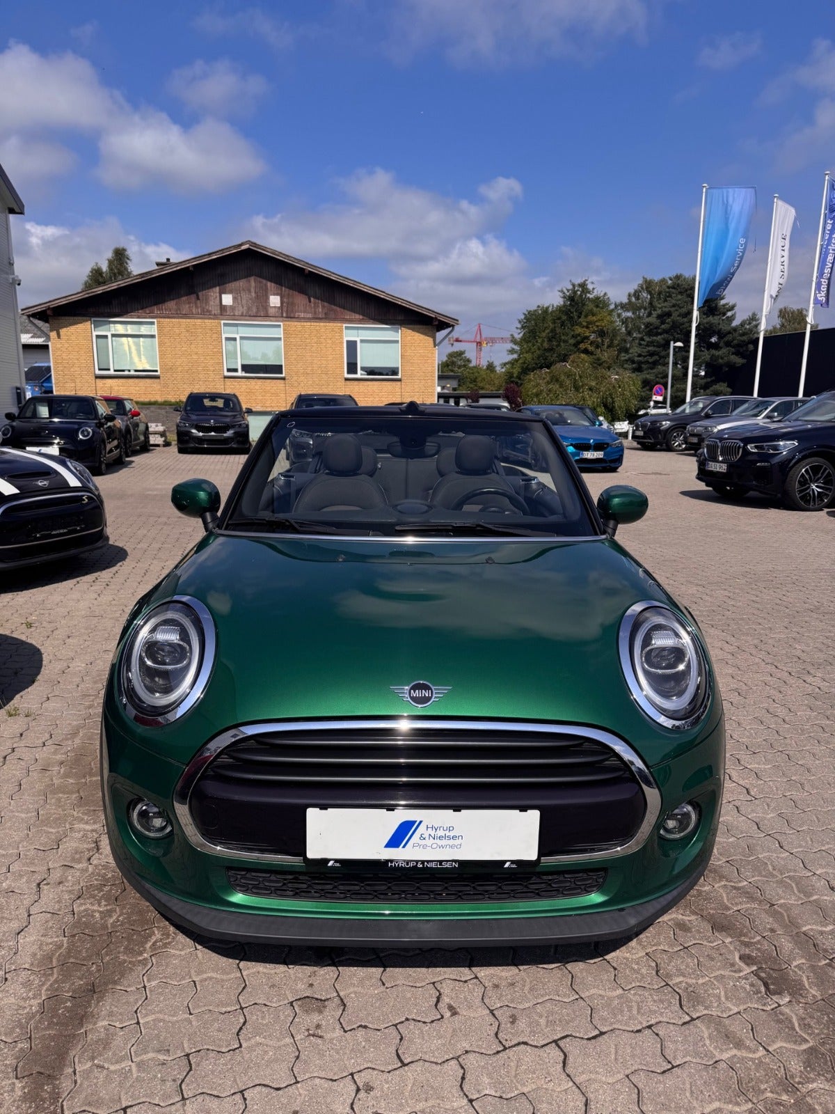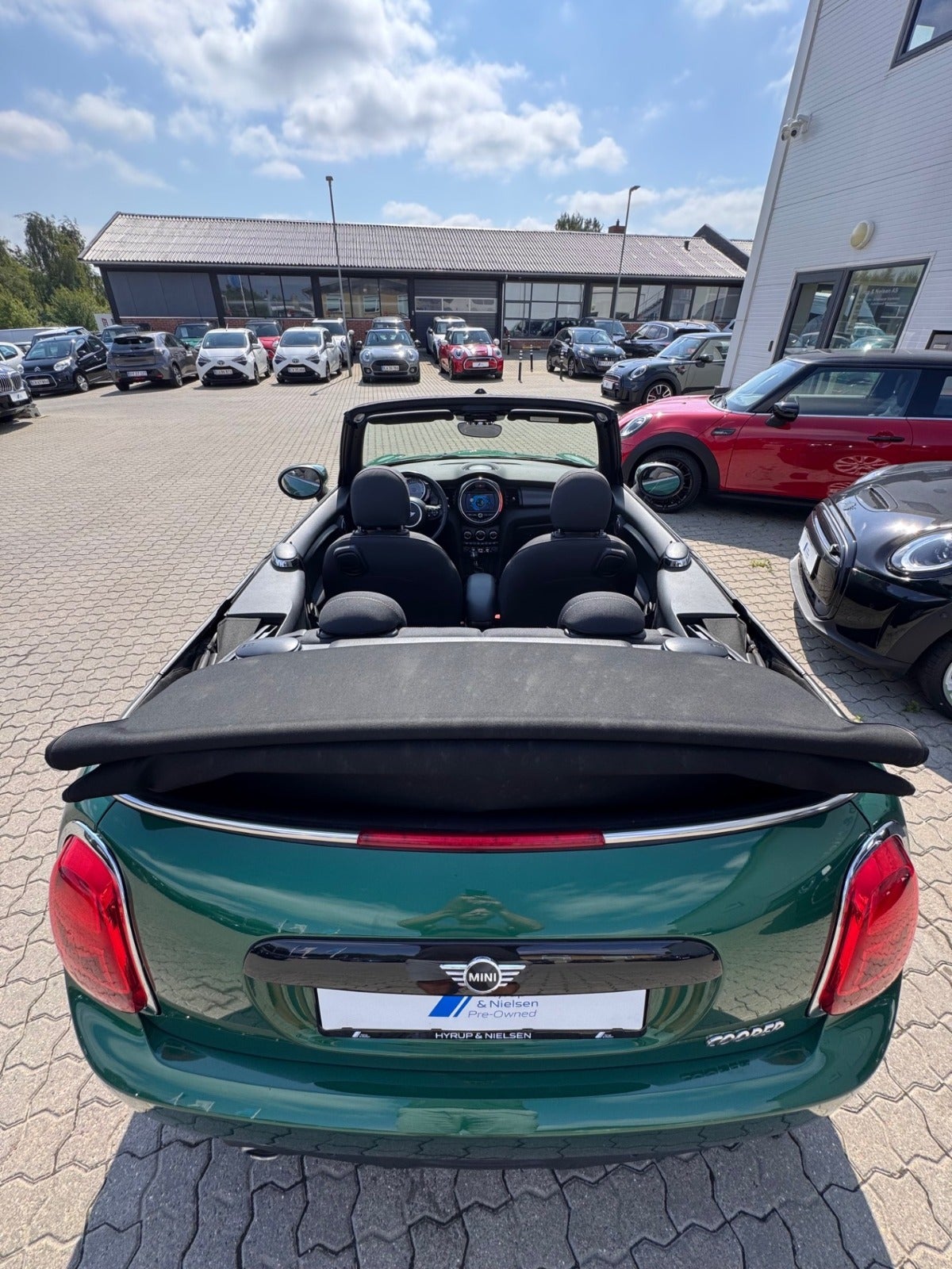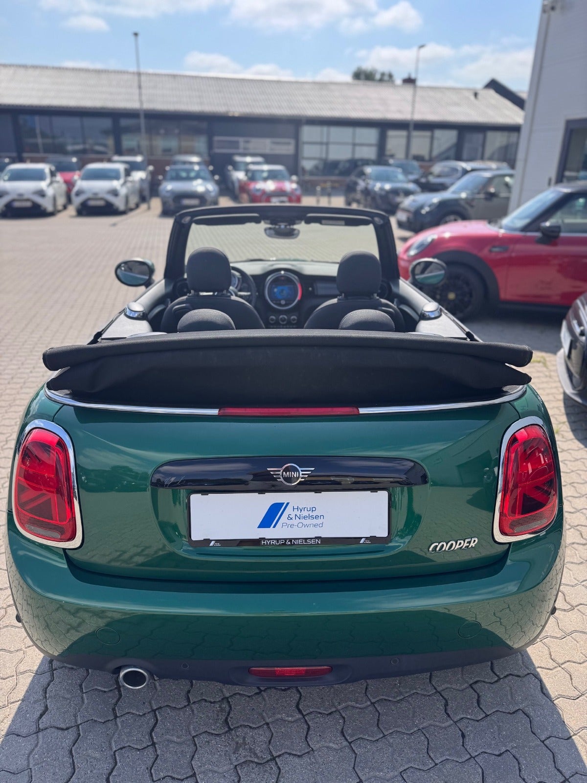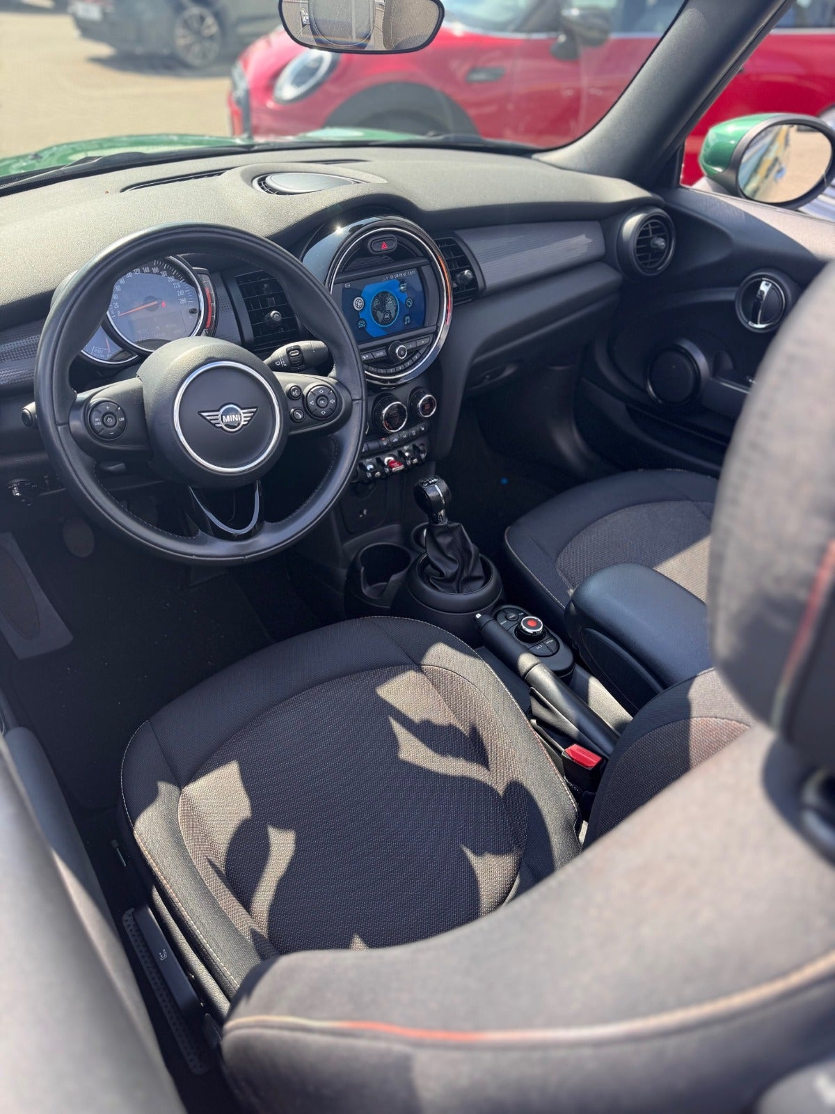 MINI COOPER ESSIENTAL CABRIOLET i Farven BRITISH RACING GREEN med Sæder i Stof Firework Carbon Black/Carbon Black, PEPPER PAKKE, MINI Excitement Pakke, 16"Letmetalfælge Loop Spoke silver ( 17" Som vist på billedet kan tilkøbes ), LED Forlygter, LED Tågelygter, MINI Lyspakke Udvendigt, Ambiente Interiør Lyspakke, Hvide Blinklys, Sportslæderrat med multifunktion, 2 zone klima, Fartpilot med Bremsefunktion, PDC Parkeringssensor (bag), Regnsensor, el-sidespejle m/varme, højdejust. forsæder, Splitbagsæde, Sædevarme, Kopholder, Armlæn, 4 x Tonede El-ruder, fjernb. centrallås, nøglefri tænding, udv. temp. måler, kørecomputer, Radio MINI Visual Boost med musikstreaming via bluetooth, DAB+ radio, MINI Connected håndfrit til mobil, antispin, esp, automatisk nødbremsesystem - Når du leaser hos os medfølger service pakke fra MINI - RING FOR FREMVISNING