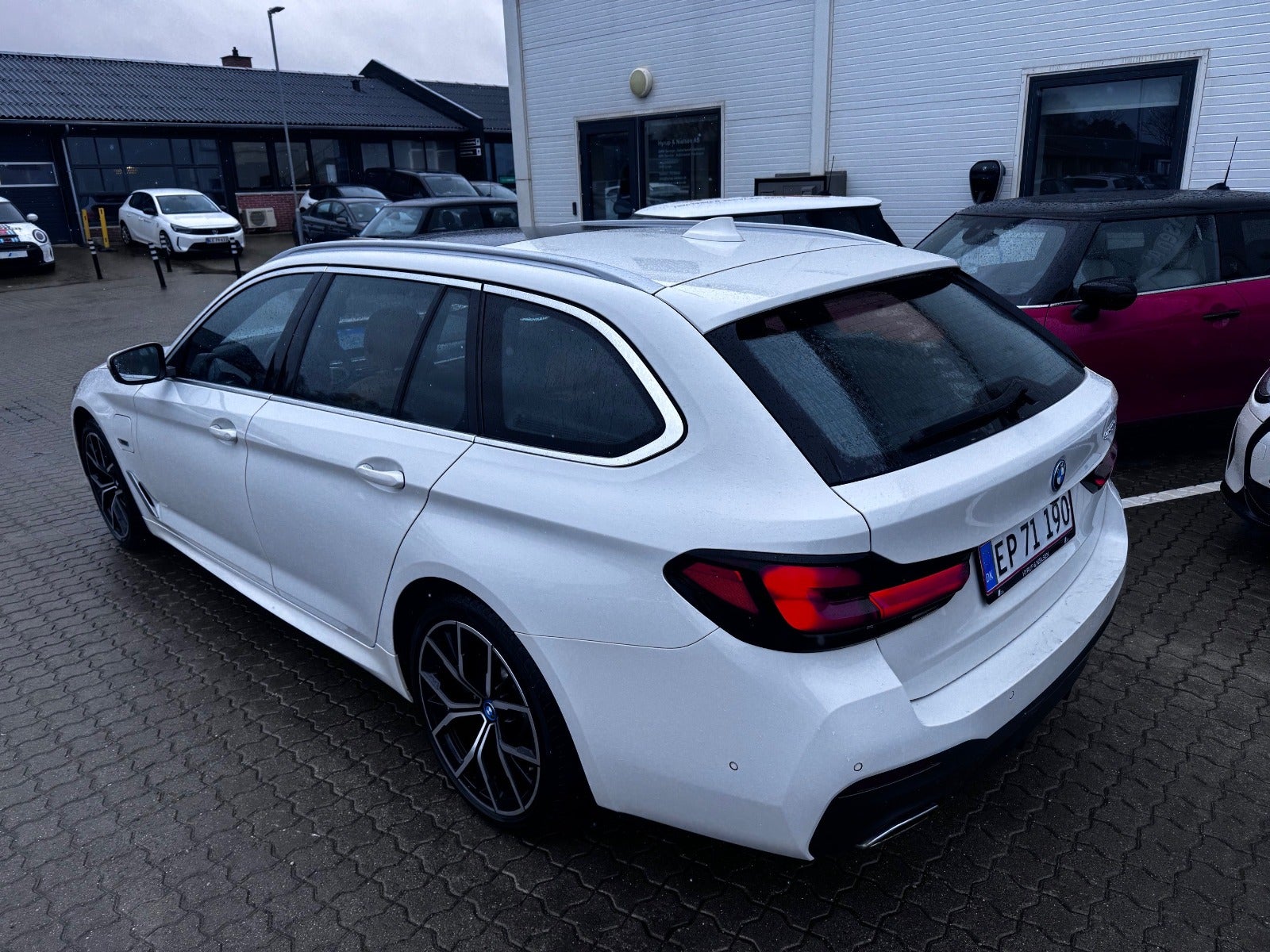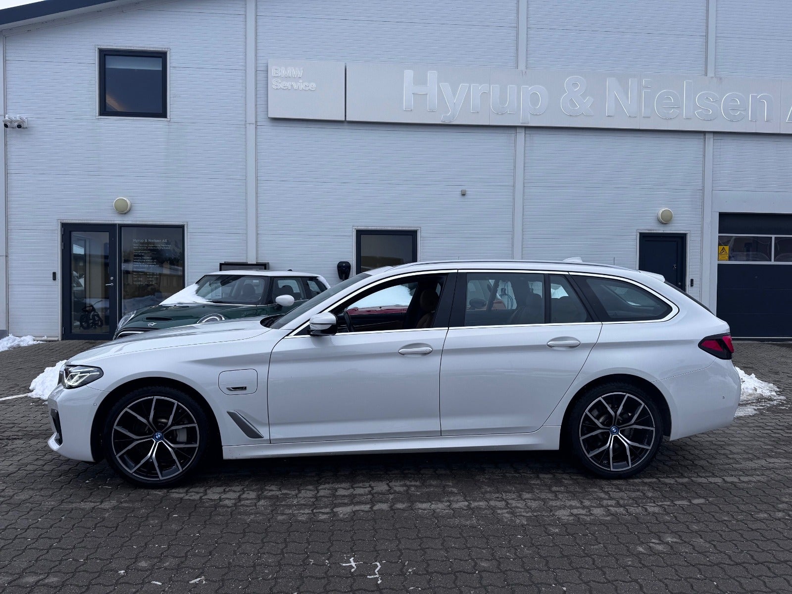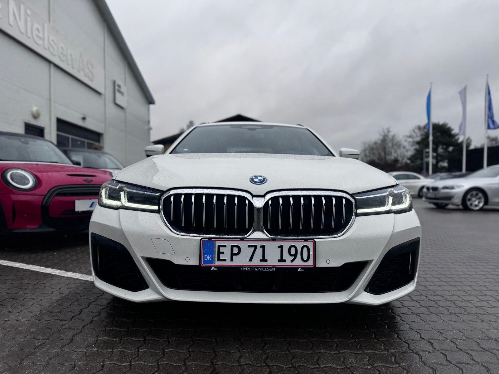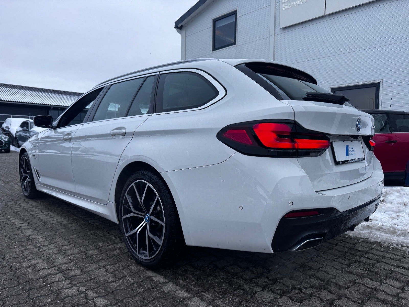 BMW 530e M Sport Aut Touring i Farven Alpin Hvid III med Sportssæder i Cognac Læder Dakota, PANORAMA GLASSOLTAG, Svingbart træk (elektrisk), 19" Letmetal fælge style 845 M Bicolour Jet Black, Driving Assistant Professional / Adaptiv fartpilot, BMW Laserlight, Fjernlysassistent, BMW Lyspakke Udvendigt med BMW Light Curtain, Ambiente Interiør Lyspakke, BMW Head-Up Display, BMW Navigation Professional, digitalt cockpit, DAB+ radio, HiFi-Højttalersystem med musikstreaming via bluetooth, ConnectedDrive håndfrit til mobil, M Sportslæderrat med multifunktion samt RATVARME, Parking Assistant (inkl. Bakkamera) / automatisk parkeringssystem, PDC Parkeringssensor (for & bag), alarm, Komfortadgang / nøglefri adgang, fjernb. centrallås, nøglefri tænding, el betjent bagklap, fod betjent bagklap, el-klapbare sidespejle m/varme, aut. nedbl. bakspejl, udv. temp. måler, Regnsensor, el indst. forsæder, højdejust. forsæder, Sædevarme, Splitbagsæde, bagagerumsdækken, Armlæn, Kopholder, 2 zone klima, 4x Tonede El-ruder, M Lofthimmel Antracit, kørecomputer, antispin, esp, vognbaneassistent, Når du leaser hos os medfølger service Pakke - RING FOR FREMVISNING