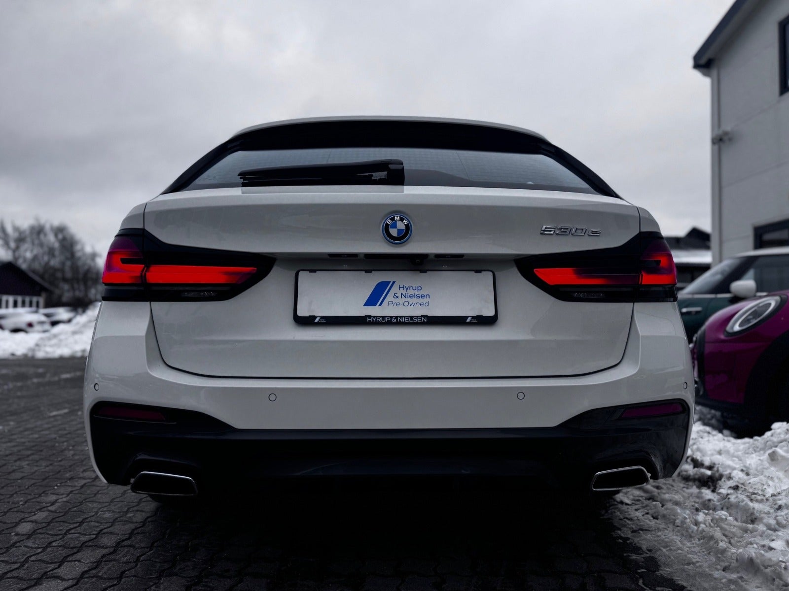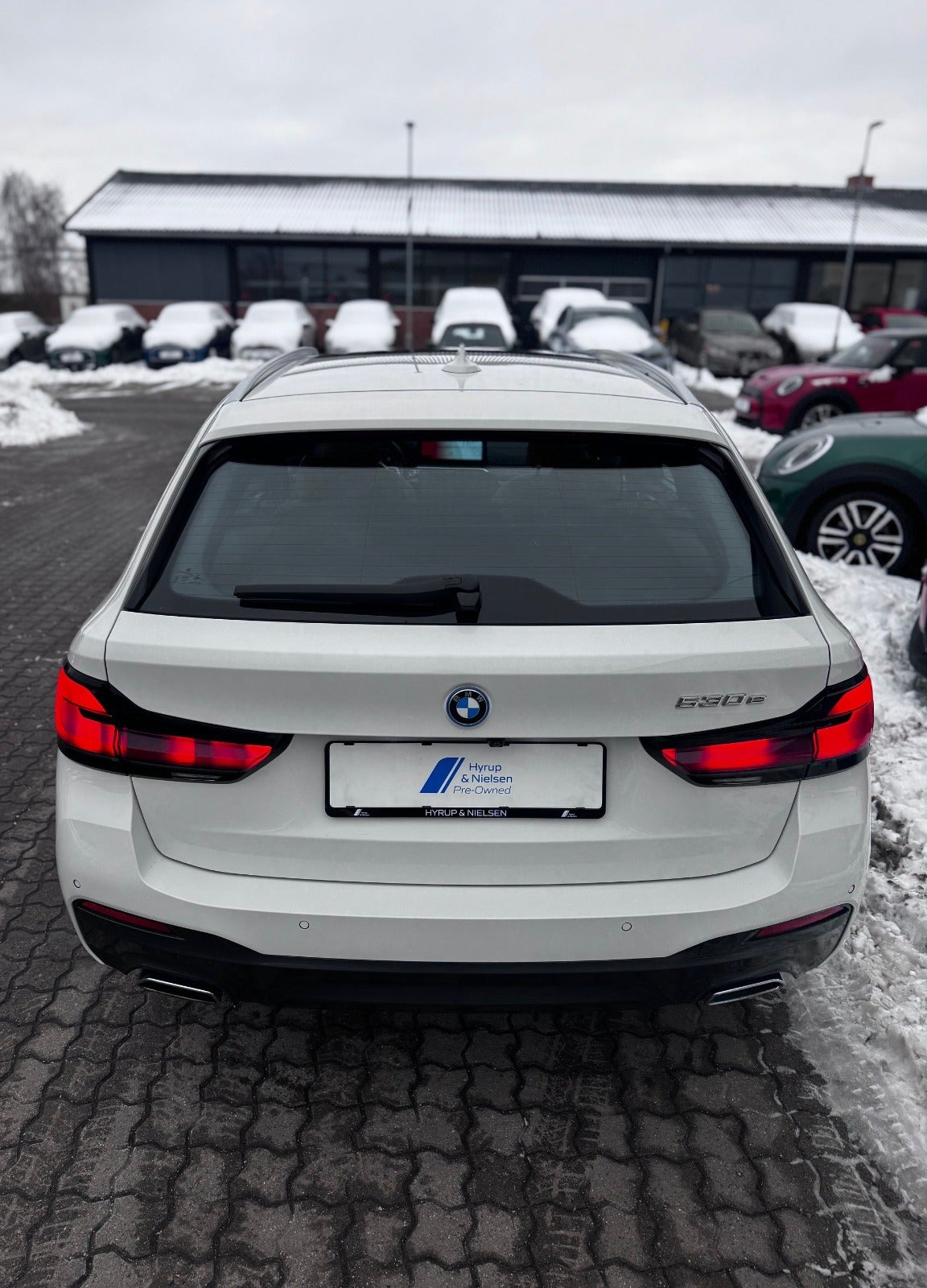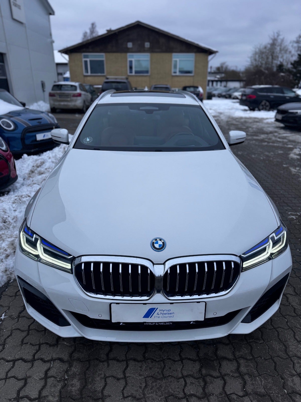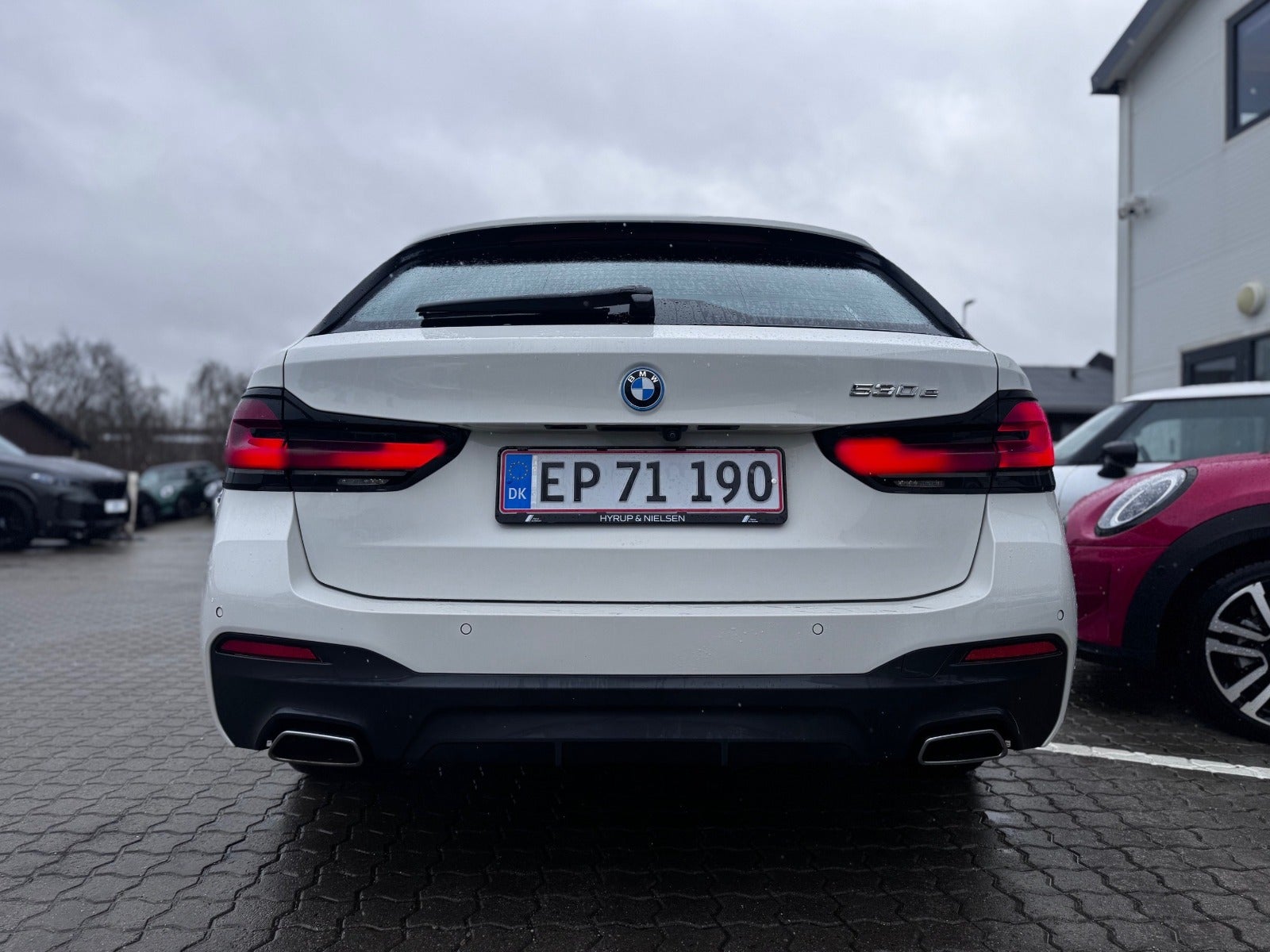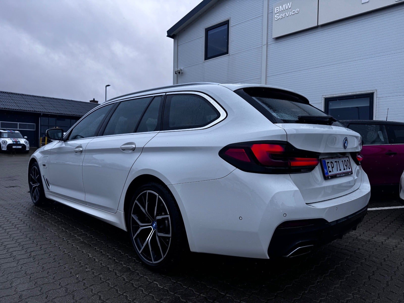 BMW 530e M Sport Aut Touring i Farven Alpin Hvid III med Sportssæder i Cognac Læder Dakota, PANORAMA GLASSOLTAG, Svingbart træk (elektrisk), 19" Letmetal fælge style 845 M Bicolour Jet Black, Driving Assistant Professional / Adaptiv fartpilot, BMW Laserlight, Fjernlysassistent, BMW Lyspakke Udvendigt med BMW Light Curtain, Ambiente Interiør Lyspakke, BMW Head-Up Display, BMW Navigation Professional, digitalt cockpit, DAB+ radio, HiFi-Højttalersystem med musikstreaming via bluetooth, ConnectedDrive håndfrit til mobil, M Sportslæderrat med multifunktion samt RATVARME, Parking Assistant (inkl. Bakkamera) / automatisk parkeringssystem, PDC Parkeringssensor (for & bag), alarm, Komfortadgang / nøglefri adgang, fjernb. centrallås, nøglefri tænding, el betjent bagklap, fod betjent bagklap, el-klapbare sidespejle m/varme, aut. nedbl. bakspejl, udv. temp. måler, Regnsensor, el indst. forsæder, højdejust. forsæder, Sædevarme, Splitbagsæde, bagagerumsdækken, Armlæn, Kopholder, 2 zone klima, 4x Tonede El-ruder, M Lofthimmel Antracit, kørecomputer, antispin, esp, vognbaneassistent, Når du leaser hos os medfølger service Pakke - RING FOR FREMVISNING